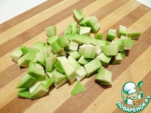 Авокадо мою, очищаю от кожуры, нарезаю кубиками.