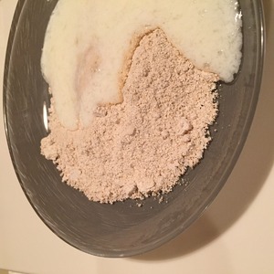 Взбиваем немного вместе кефир и белок, смешиваем муку и белок с кефиром.