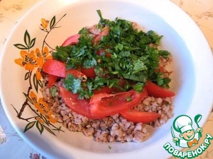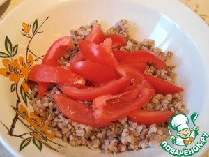 Добавить к гречке помидоры (семена удалить), нарезанные полосками.