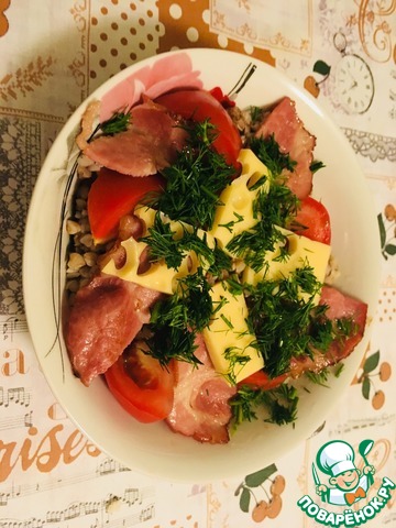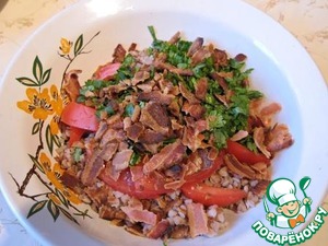 Рецепт «Салат из гречки с помидорами и беконом»: