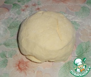 Добавляем соль, сахар, разрыхлитель теста и муку. Замесить тесто, чтобы не прилипало к рукам. Количество муки зависит от замеса теста. Тесто оставляем и переходим к приготовлению начинки.