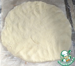 Тесто разделить на две части. Раскатать две лепешки диаметром 20 см. Одна лепешка должна быть чуть больше.