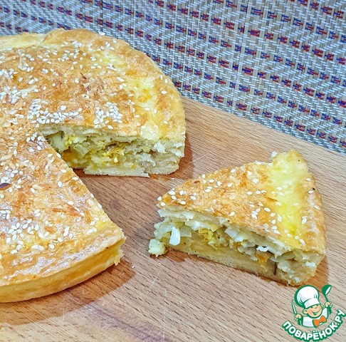 и румяному цвету. Пирог прост в приготовлении, начинку для пирога можно брать абсолютно любую. Приятного аппетита!