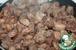 Мясо обжариваем на растительном масле до золотистого цвета.