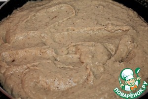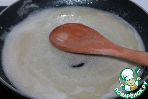 Теперь приступаем к соусу. Для этого на сковороде раскаляем растительное масло и добавляем к нему муку, все тщательно перемешиваем и держим на огне до загустения.