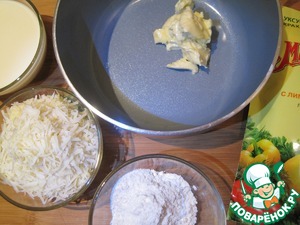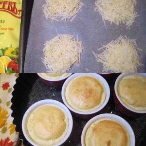 Приготовление сырного суфле-непрерывный процесс, поэтому необходимые продукты подготовим сразу. Сыр натрём на мелкой тёрке, масло, муку и молоко отмерим нужное количество, отделим желтки от белков. Духовку включим на разогрев t 180-200 градусов. Жаропрочные формочки для суфле смажем сливочным маслом.