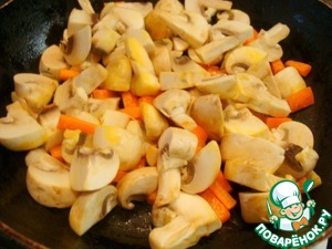 На сковороде разогреть растительное масло и обжарить на нем в течение 5 минут морковь.