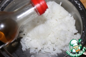 • Готовый рис осводобить от пакетика, приправить рисовым уксусом, аккуратно перемешать