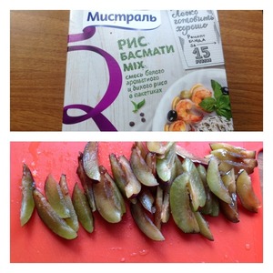 Рис поставить отваривать. Сливу помыть, вытащить косточку и нарезать пластинками.