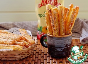 Очень рекомендую приготовить эти вкуснейшие палочки!! Готовятся очень просто, но результат... супер! Рекомендую использовать в тесто майонез (Махеев), то есть, сократив количество сливочного масла, мы дополним его майонезом. Преимущество в том, что в майонезе есть уже и яйца, и масло растительное, поэтому в тесто не добавляем эти продукты. Еще заметьте, в рецепте теста нет ни соды, ни разрыхлителя!!!