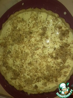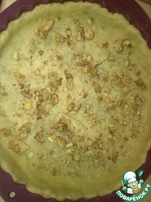 Выкладываем тесто в форму. И ставим в разогретую духовку на 5-7 мин. В это время начинаем готовить начинку.