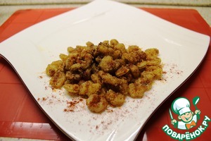 Выложить креветки на край блюда и немного присыпать молотой паприкой.