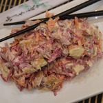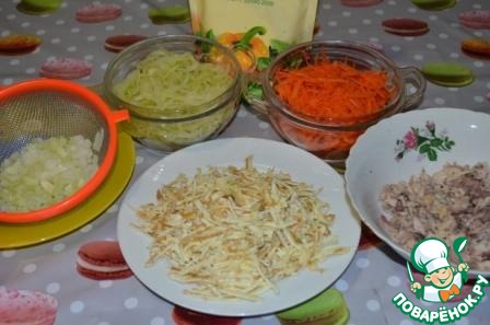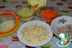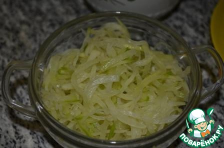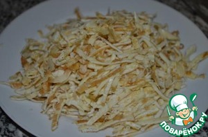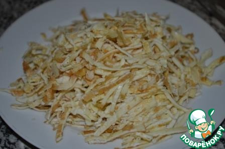 Я готовила половину порции. И сырую морковь, и сырую редьку натереть на терке или нарезать тонкой соломкой.