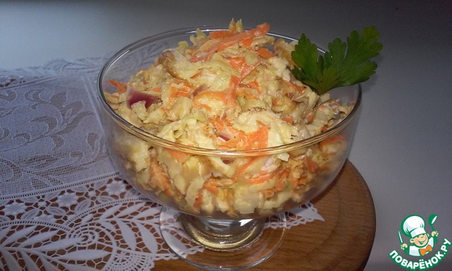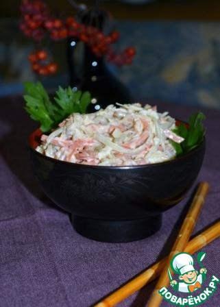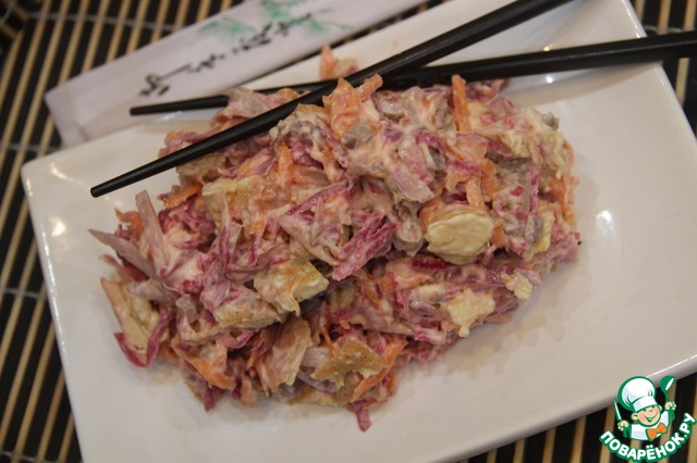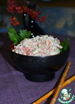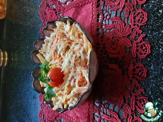 Даже не помню, как давно этот салат появился в нашей семье, причем появился именно под этим названием. Так что, ничего не меняя, решила поделиться с вами этим рецептом. Попробуйте, может, он придется по душе и вам.
