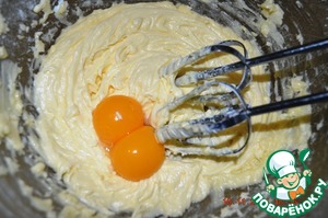 Сначала готовим начинку: в сотейник положить сахар и желтки