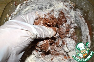 Высыпаем оставшуюся половину муки и рукой вымешиваем.