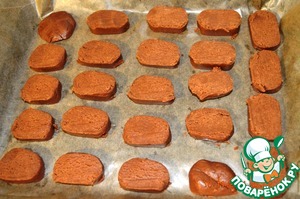 Через час достаем колбаски, режем на кружочки (толщина примерно от 0,5 до 1 см) и выкладываем их на застеленный пергаментом противень. Отправляем в разогретую духовку на 10 минут при 180 градусов. Если печенье выпекать большее количество времени, то можно его пересушить (все таки оно вкусное когда мягенькое).