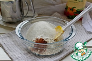Отдельно в миске смешать сухие ингредиенты: просеянную муку, соль, разрыхлитель, корицу и сахар.