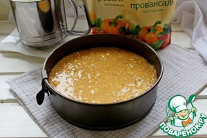 Вылить тесто в смазанную форму диаметром 20 см и выпекать в заранее разогретой до 180*С духовке 35-40 мин., до сухой спички.