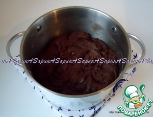 Снять смесь с водяной бани, добавить просеянную муку, какао, разрыхлитель.
