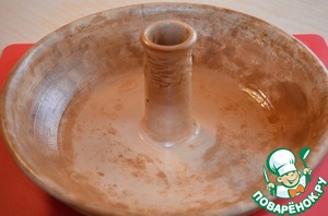 Готовить цыпленка буду вот в таком приспособлении, у которого имеется трубочка которая заполняется вином, пивом, крепким чаем, на которую садится курочка. Если такого приспособления нет, то можно использовать стеклянную бутылку, поставить ее в форму для запекания, посадить на нее цыпленка и так же распределить овощи. Я налила в трубочку белого вина.
