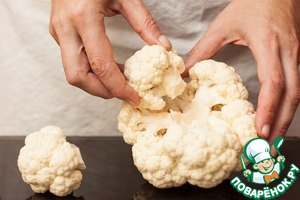Цветную капусту разбираем на соцветия и отвариваем на пару.
