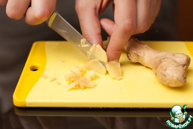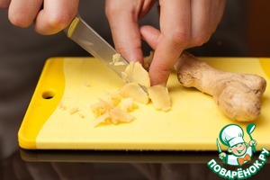 Корешок имбиря размером примерно 3 см очищаем и мелко нарезаем