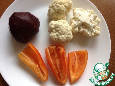 Нам понадобится отварная свекла, болгарский перец и цветная капуста