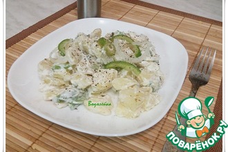 По желанию можно добавить нарезаный соленый огурчик - тоже ну очень вкусно получится. Даем салату настояться, пока варится рис. -