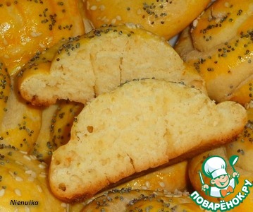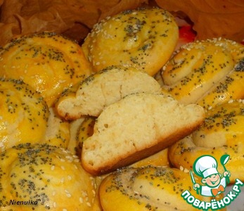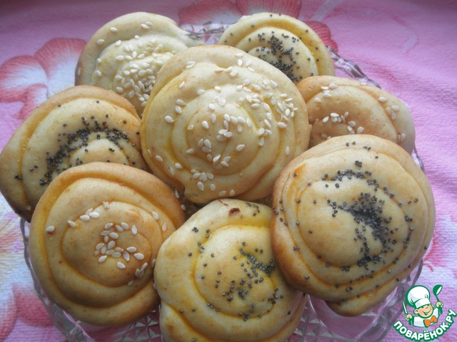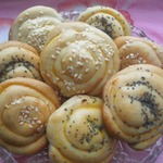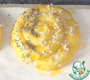 Каждую улитку на половину посыпаем маком и кунжутом.