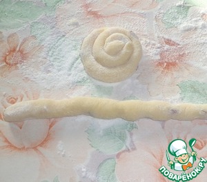 Отщипнуть немного теста и скатать из него колбаску. Сворачиваем в улитку.