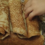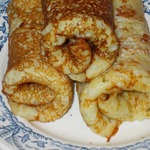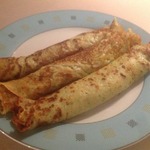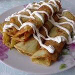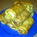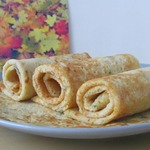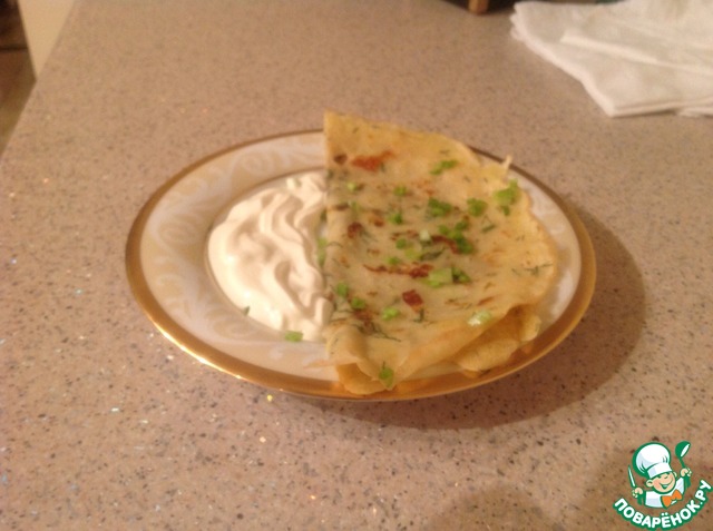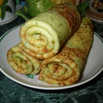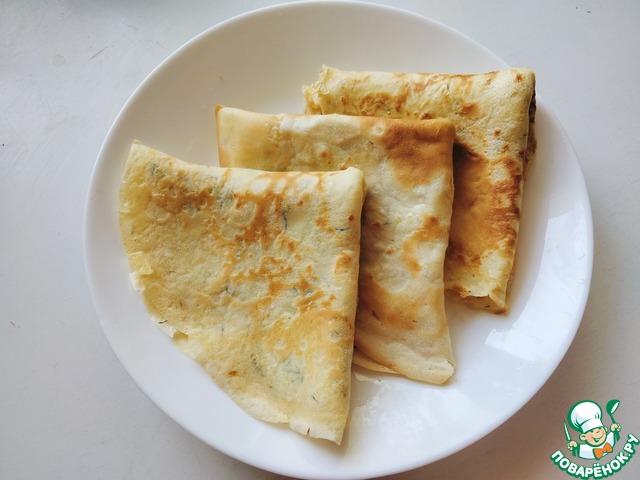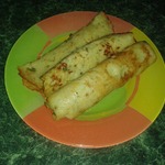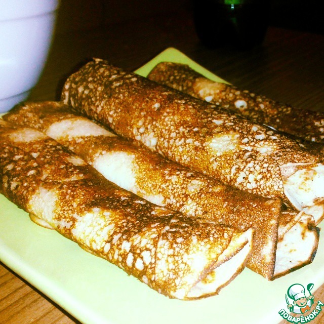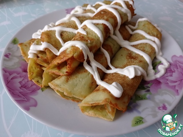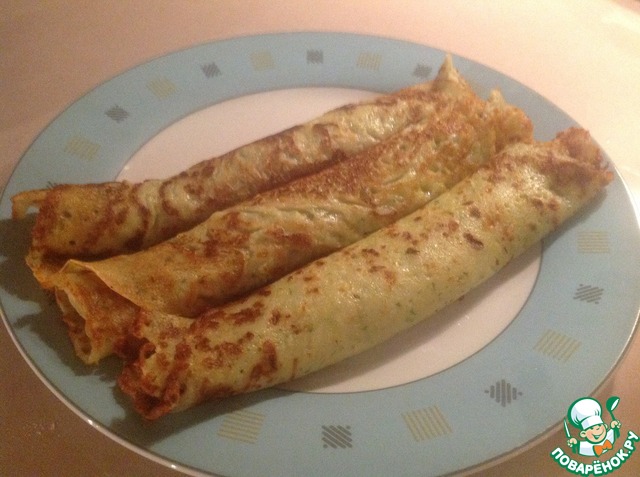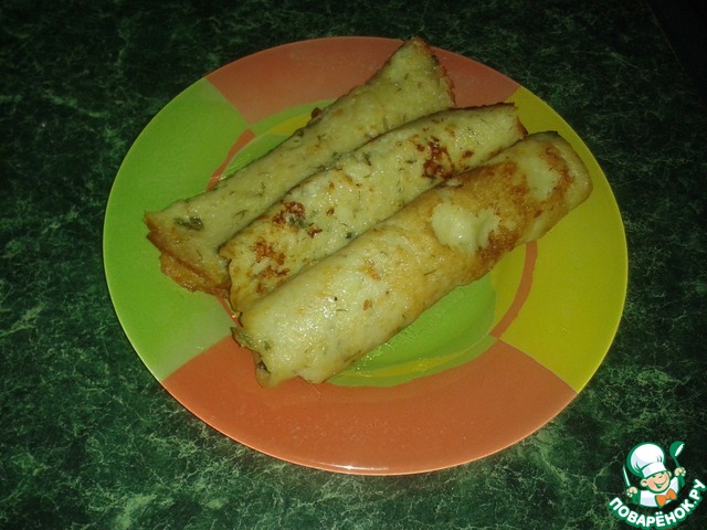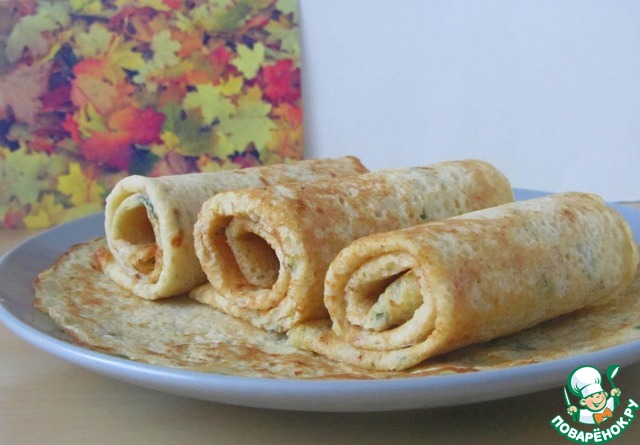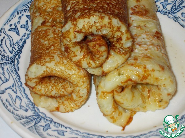 - скручивала блины горячими и сразу середину посыпала тертым сыром - для большей сырности