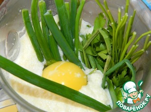 Сыр натираем на терке и высыпаем в тесто. Добавляем муку, молоко, воду, масло, соль.