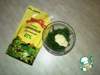 Мелко рубим зелень укропа и петрушки. Смешиваем с 1 ст. л. майонеза и хорошо все перемешиваем.