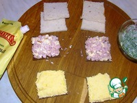 Рецепт «Бутербродные пирожные с ветчиной и зеленью»: