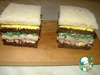 Предлагаю попробовать такой праздничный и нарядный вариант бутерброда, который украсит и праздничный стол! Уверена, что бутербродный тортик очень удивит и порадует Ваших гостей своей оригинальной подачей. Угощайтесь!