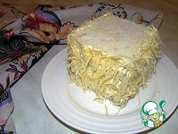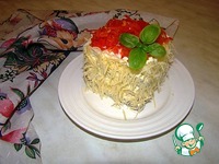 Верх тортика посыпаем тертым сладким перцем. Украшаем веточкой зелени и убираем в холодильник на 30 минут, чтобы пропитался.