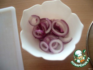 • Почистил луковицу, сбрызнул уксусом и отставил.