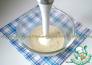Взбить блендером сливки и халву (мне хватило 50 гр., а вам если не будет сладко добавьте ещё немного халвы).