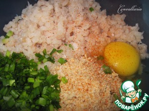 Филе рыбы прокрутить через мясорубку, добавить мелко нарезанный лук, яйцо, хлебную крошку, соль и перец. Хорошо вымесить фарш.