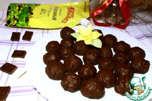 Растопить на водяной бане половину плитки шоколада и обмазать им сверху "орешки".
