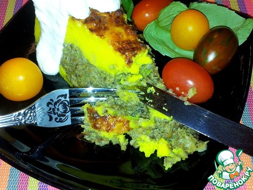 Форму с пюре и грибами поставить запекаться в нагретую до 180 градусов духовку на 40 - 50 минут.