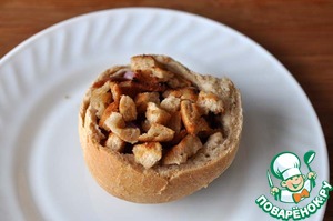 В булочке отрезаем верхушку, лучше взять нож с пилкой. -