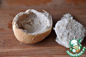 Вырезаем мякиш, оставляя по 1 см стенок и дна.