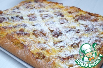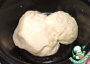 Приготовить дрожжевое тесто. Я кратко опишу свой способ замеса, но вы можете его приготовить любимым вами способом. Свежие дрожжи распустить в теплом молоке, соединить с половиной просеянной муки, перемешать и дать немного подняться. Ввести два яичных желтка и влить растительное масло и всыпать оставшуюся муку, хорошо вымесить и поставить в теплое место подниматься. У меня тесто подходило в мультиварке 30 минут (режим "Йогурт").