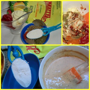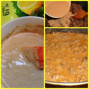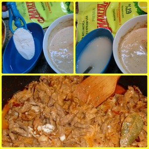 Пока мясо обжаривается, смешиваем компоненты соуса, оставив 50 мл воды для разведения муки