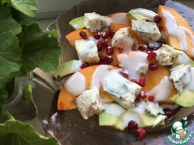 Рецепт «Салат из хурмы, авокадо и голубого сыра»: