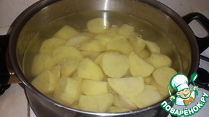 • Разогреть духовку. Когда картофель сварится, посолить его и сделать пюре (я делаю с помощью молока).