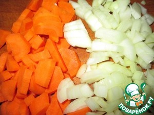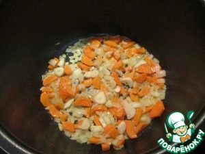 В чашу мультиварки налить немного растительного масла и отправить в нее лук-морковь. Установить режим жарка (обжаривание)