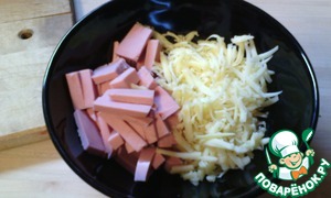 Натереть сыр, нарезать ветчину, смешать и добавить специи и сметану. Перемешиваем, должна получиться густая заправка.